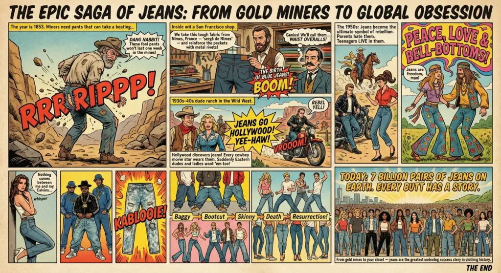 Jeans are so normal, and we are all used to it around the world. But jeans history is not normal; when you know it, you will be amazed. Without a surprise. Jeans are a universal garment that brings people from all walks of life together, regardless of nationality, religion, or socioeconomic class. They can now be found in the closets of an American millionaire, a Japanese schoolboy, and a Norwegian pensioner, but it wasn’t always so. Jeans have evolved throughout the last century, as has vogue for them. Let’s go over what happened.